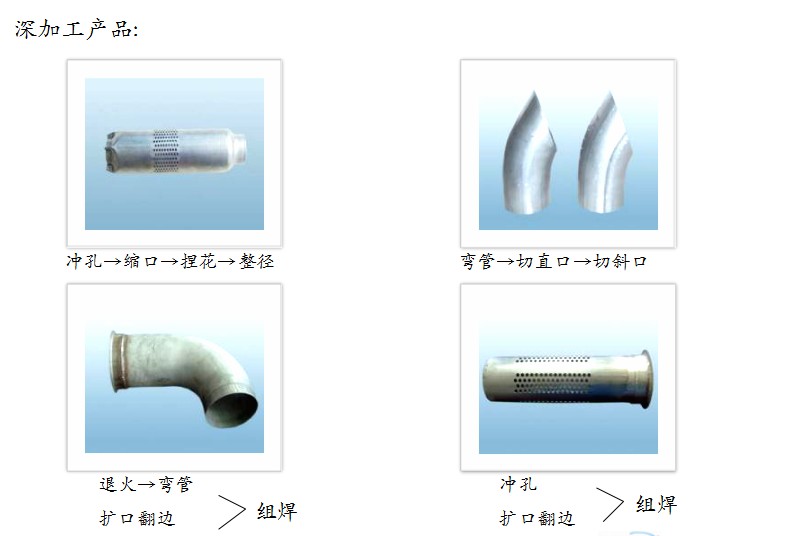 是一家專業從事焊接不銹鋼管生產及銷售的民營企業。公司于2001年籌資組建。公司占地面積1.5萬平方米,建筑面積1.2萬平方米,擁有3000平方米廠房2座。2010年末公司銷售額達到2億元人民幣。 公司擁有國際領先水平的TIG焊生產線14條,3500W/5000W激光焊生產線2條,光亮退火生產線2條,高頻焊生產線1條。產品涵蓋:材質從不銹鋼304、309、316、321、409L、429、432、441、409AL到SA1D、Fe。管徑從6-133mm(在線制管),133-460mm(卷焊)。壁厚從0.5-3.0 mm。廣泛用于汽車消聲器以及排氣系統,排氣彎管,消聲器筒體,排氣組件等不銹鋼管產品系列。 公司生產工藝和技術裝備達到國際先進水平,已通過ISO9001:2000和TS16949:2002質量管理體系認證。為保證生產出合格的產品,公司配備了焊縫跟蹤系統、渦流探傷系統、彎、擴、縮等機械測試裝置。手持式X熒光光... 速對金屬材質進行化學分析和鑒定。通過儀器防錯、力學性能、硬度測試、化學成分分析、金相分析實驗等1系列檢測程序嚴格保證產品質量。為了...